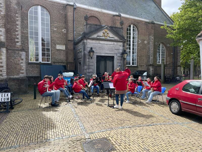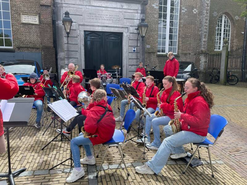 's Middags kwam de jeugd van Sempre in actie bij de jaarlijkse Tulpentocht. Op het Marktveld in Sommelsdijk werd door een grote club van onze jeugd in de kenmerkende rode Sempre-jassen prachtig muziek gemaakt.